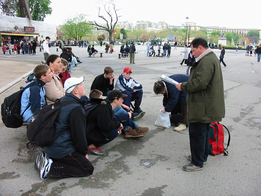 Au pied de la Tour, Monsieur Buchet nous donne les consignes de
